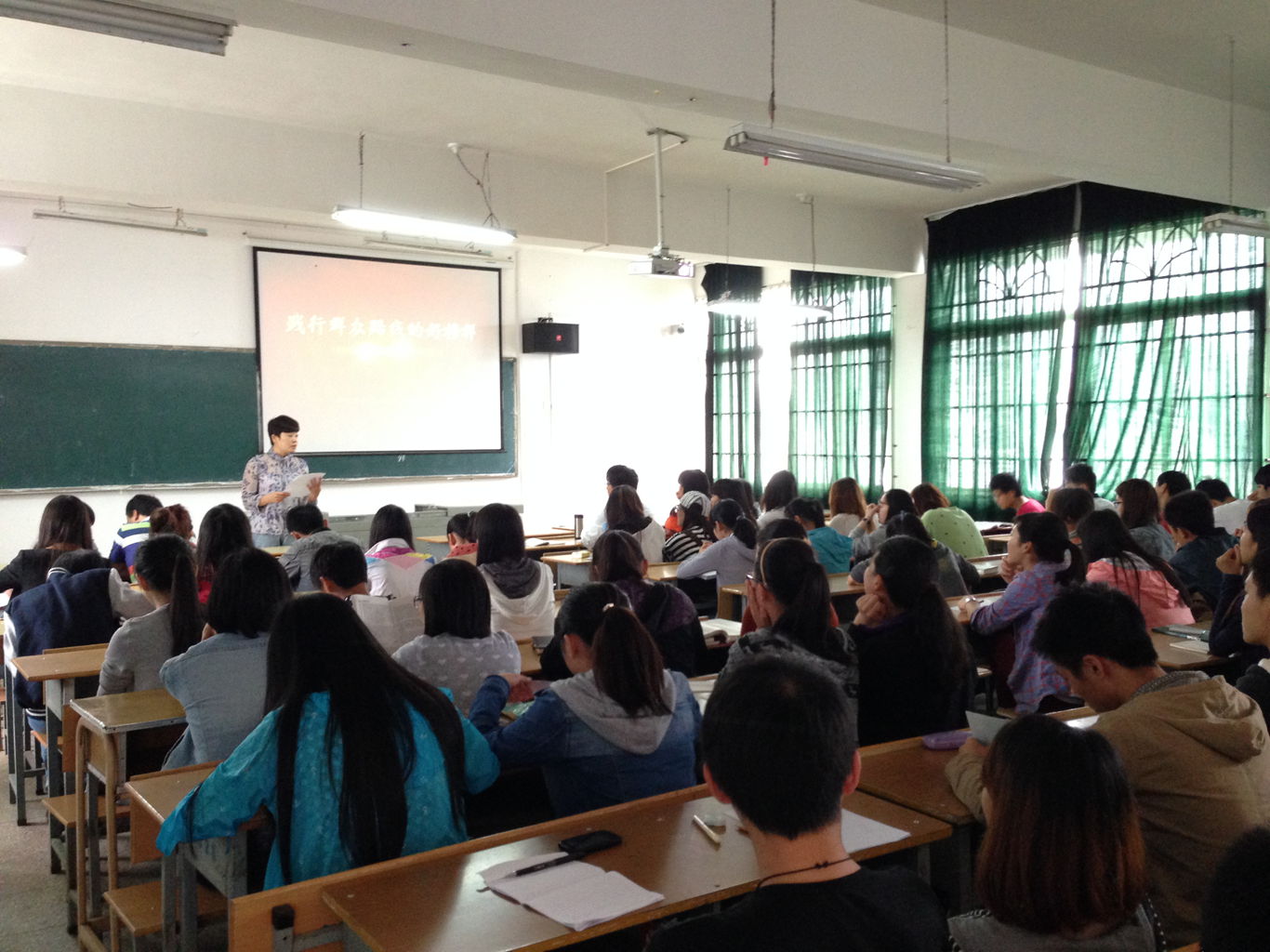 2014年5月26日下午,公司全体教师、机关党总支兰定松老师与员工党员、入党积极分子一同在新教学楼B43教室进行党的群众教育实践活动集中学习——观看《践行群众路线好榜样》纪录片,活动由公司党总支书记胡赤兵主持。胡书记说到,这100部以学习贯彻党的群众路线为主题的先进典型事迹片是开展教育实践活动、学习先进典型和身边榜样的生动教材。本次学习与观看的是其中重要的一部《杨善洲》。“一个共产党员对党的情怀超越了一个父亲对子女的关爱”的杨善洲用默默奉献的实际行动证明了真正的共产党员,他保持了党员干部的先进性,是党的群众路线忠实的践行者的榜样。