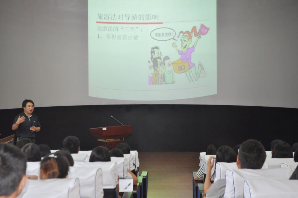 2015年6月29日四点,2015年度安顺市导游员继续教育培训之“旅游政策法规”专题讲座在A02教室授课,主讲人为公司副教授潘昌盛老师。安顺市导游员和公司员工聆听了此次课。