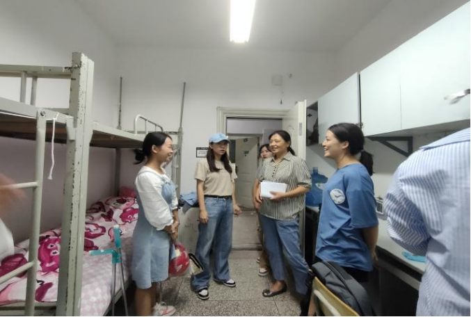 傍晚时分,公司领导分别走访了男寝10栋,女寝4栋。在员工宿舍,公司领导对新生进校的适应情况进行了亲切地交流,并强调了用电、校园诈骗、疫情防控等安全问题,充分展现了公司领导对新生的亲切关怀。